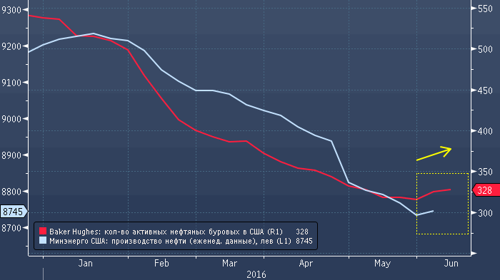 В США реализованный рост цен возвращает активность в нефтяную отрасль. Согласно данным Министерства энергетики и той же еженедельной статистики от нефтегазовой сервисной компании Baker Hughes мы определенно имеем сигнал оживления на стороне добычи.