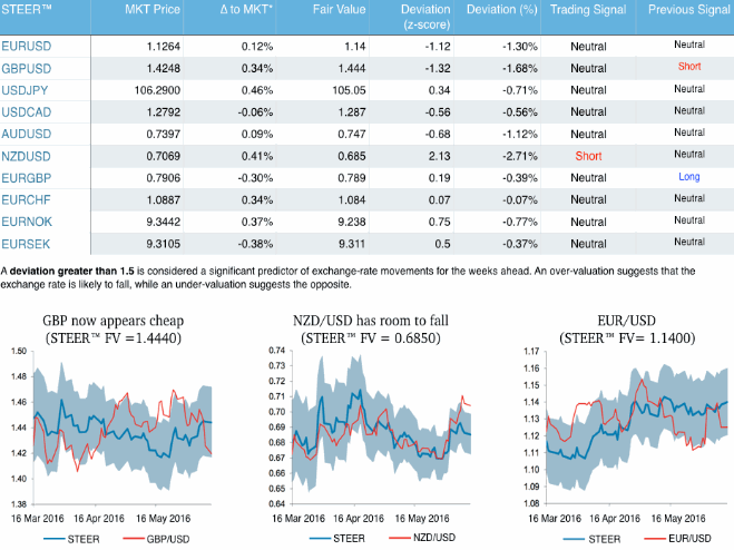 Валютные стратеги BNP Paribas обновили еженедельную оценку ситуации на валютном рынке, в подготовке которой используется квантовая модель «STEER», довольно успешно зарекомендовавшая себя с точки зрения точности своих прогнозов. Напомним, что данный банк является пионером использования данного подхода к оценке «справедливости» текущих валютных курсов. Основу данной методики представляет взаимосвязь между процентными ставками, стоимостью акций и цен на сырьевые товары.