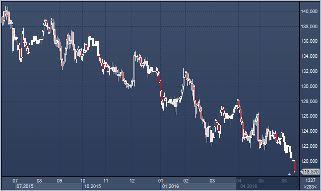 Евро начал активно снижаться с открытия торгов в Европе и сейчас опустился на $1.1238. Британский фунт торгуется сейчас на $1.4142, отойдя от двухмесячного минимума $1.4117, установленного в понедельник. По отношению к иене, которая обычно растет при ухудшении аппетита к риску, фунт упал до 149.81 иены, отойдя от минимума 149.50 иены. Иена демонстрирует самую сильную динамику среди валют стран G10, торгуясь вблизи отметки в 105.79 за доллар. Иена также обновила максимум трёх лет к евро, который упал до 118.68 иены. Министр финансов Японии Таро Асо во вторник заявил, что японский власти будут предотвращать укрепление иены, провоцируемое спекуляциями. "Мы должны внимательно отслеживать колебания валютных курсов для обеспечения того, чтобы колебания, вызываемые спекуляциями, не продолжались", - сказал он. "При необходимости мы может принять твердые меры в соответствии с соглашениями в рамках G7 и G20", - отметил Асо. Реакция рынка на заявления Асо в понедельник была слабой.