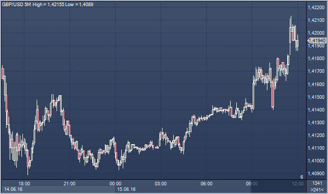 Только что вышли экономические данные, которые усилили коррекцию фунта выше часового сопротивления на $1.4205 до $1.4213. Следующее сопротивление находится на $1.4220 и $1.4240/50. Его прорыв необходим для дальнейшего облегчения медвежьего давления на фунт, хотя опасения по поводу Brexit сохраняются и будут привлекать продавцов во время любых подъемов. Безработица в Великобритании за февраль-апрель 2016 года составила 5% против уровня января-марта в 5.1%, свидетельствуют данные Бюро национальной статистики (ONS). Аналитики прогнозировали показатель на уровне 5.1%.