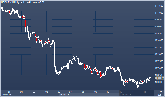В этом случае реакция на сегодняшнее событие будет минимальной, и внимание игроков обратится к заседанию Банка Японии и Банка Англии в четверг. Первый — единственный, в отношении которого аналитики допускают возможность изменения политики. Этот ЦБ вообще отличается способностью шокировать рынки своими сюрпризами. Далее внимание будет направлено на комментарии Марио Драги в пятницу, который в принципе мало что может сказать нового. Поэтому главной интригой рынка по-истине останется британский референдум и опросы по поводу мнения жителей альбиона о необходимости развода с ЕС. "Иена имеет тенденцию укрепляться к доллару в периоды повышенного неприятия риска. Курс доллара к иене будет снижаться из-за растущих опасений, что Великобритания проголосует за выход из ЕС. Тем не менее, если Банк Японии объявит о введении дополнительных мер смягчения монетарной политики, курс может резко подняться до 108,70 иены за доллар", - сказал валютный стратег Commonwealth Bank of Australia в Сиднее Элиас Хаддад Источник: ProFinance.Ru - Новости рынка Forex