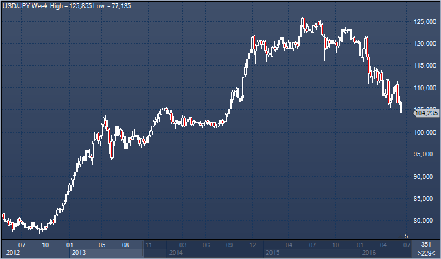 Дополнительное давление на американскую валюту оказало решение ФРС США сохранить базовую процентную ставку на уровне 0.25-0,5% годовых. ЦБ вновь не исключил сохранения ставки на текущем уровне в течение некоторого времени и подтвердил прогноз по повышению ставки в 2016 году до среднего уровня в 0.9%. Таким образом, он ожидает два повышения до конца текущего года. Негативом стало то, что американский Центробанк ухудшил прогноз по росту экономики в 2016 году до 2% с мартовских 2.2%. В то же время прогноз по динамике инфляции на текущий год повышен до 1.4% с 1.2%. Прогноз по безработице сохранен на уровне 4.7%. Решение по ставке ФРС было ожидаемо для рынков, они уже заложили его в цену активов, заявила журналистам председатель Банка России Эльвира Набиуллина. По ее оценкам, в будущем при действиях по ставке регулятор США все будет делать плавно, "предсказуемо и без последствий". Угрозы выхода Великобритании из состава Европейского союза (Brexit) также благоприятствует покупкам иены.
