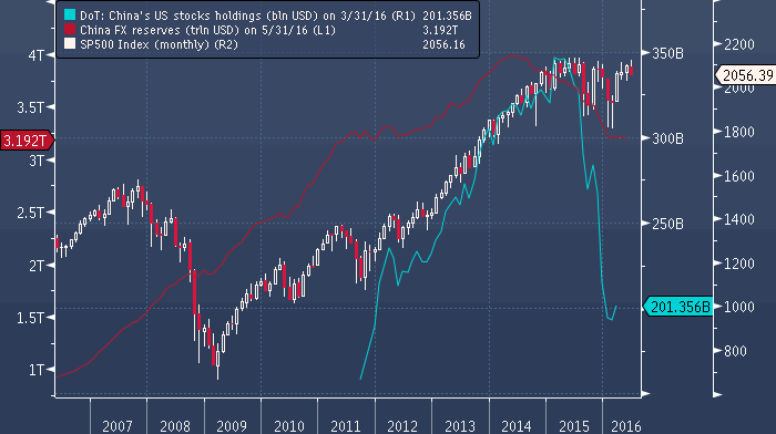 Замедление китайской экономики и отток капитала повлекли за собой драматичное сокращение крупнейших золото-валютных резервов в мире: Китай в прошлом году активно продавал государственные облигации США, и данные об изменении в резервах внимательно отслеживались инвесторами, для которых они выступали в роли индикатора остроты проблем в китайской экономике. С 2014 года Китай израсходовал около 20% резервов, при этом объем продаж государственных облигаций США составил около $250 млрд. В последние месяцы темпы сокращения портфеля облигаций замедлились, а опасения относительно ситуации в Китае несколько улеглись. Стоит, вместе с тем, отметить, что весьма активной распродаже подверглись американские акции: по состоянию на конец марта у китайских счетов их осталось на сумму в $201.3 млрд. против $303.6 млрд. на конец июля 2015 года. Учитывая ограничения, введенные китайскими регуляторами, а также китайские данные SAFE по вложениям частного сектора в иностранные акции за 2015 год, можно говорить о том, что подавляющая часть продаж американских акций осуществлялась именно официальными именами.