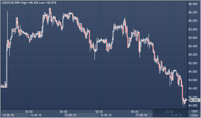 Курс доллара сегодня может упасть ниже 64 рублей, а в ближайшие дни ослабнуть еще больше из-за ослаблению позиций евроскептиков в Великобритании и приближению цен на нефть к $50 за баррель, считают аналитики Sberbank CIB Том Левинсон и Искандер Луцко. "Сегодня пара доллар/рубль вполне может упасть ниже 64 за доллар, а в ближайшие дни – еще больше. Такое развитие событий повышает вероятность очередного снижения ставки на 50 б.п. на ближайшем заседании ЦБ РФ (29 июля)", – пишут сегодня эксперты.