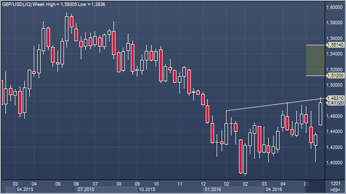 На этой неделе впервые с прошлого ноября фунт/доллар поднялся выше 200-дневной МА ($1.4675) и даже протестировал важную область сопротивления $1.4830 (восходящая линия сопротивления с этого февраля и минимумы 2013 года). В случае прорыва выше следующей целью станет 55-недельная МА ($1.4906), однако мы сомневаемся, что паре удастся взять ее сходу. На две ($1.5120) и шесть фигур выше ($1.5514) находятся еще два важных сопротивления (коррекция 38.2% и 50% от снижения с 2014 года соответственно), Источник: ProFinance.Ru - Новости рынка Forex