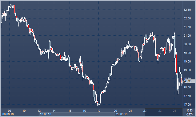 Сегодня цены на нефть определяются факторами, не связанными с нефтяным рынком. Прежде всего, это динамика доллара США, который выглядит более безопасной валютой, чем евро или британский фунт. Все сырьевые товары, котирующиеся в долларах, в ближайшее время окажутся под давлением, пока инвесторы будут пытаться предугадать дальнейшее развитие событий. Сейчас сложно оценить последствия выхода Великобритании из ЕС в плане экономического роста в Европе и во всем мире. Соответственно, очень сложно понять, в какой степени на нефтяные котировки влияет негативный настрой из-за референдума, а в какой - укрепление доллара.