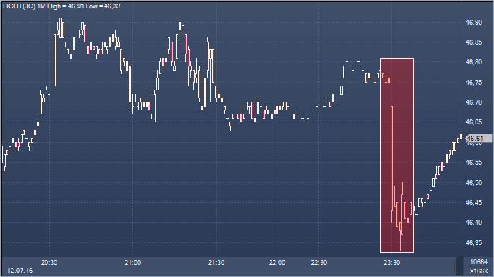 Первоначальная реакция котировок WTI – снижение на 1%. Источник: ProFinance.Ru - Новости рынка Forex