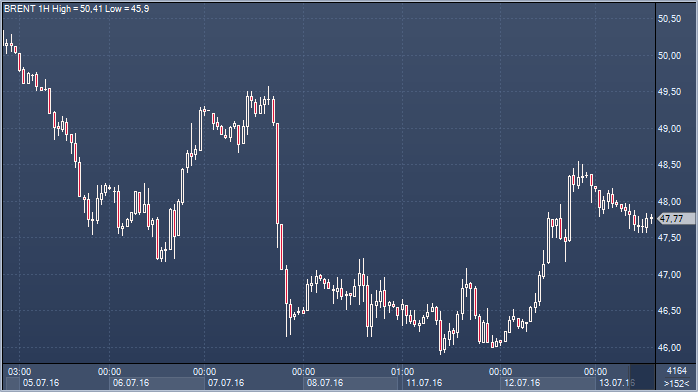 Цена Brent выросла со вчерашнего внутридневного минимума $47.08/барр. До $48.57/барр., несмотря на увеличение запасов нефти в хранилищах в США на 2.2 млн барр., о котором сообщил Американский институт нефти (API) (при том, что аналитики ожидали сокращения запасов на 3 млн барр.).
