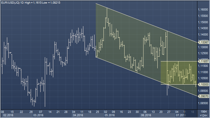 Мы придерживаемся медвежьих взглядов на евро. Данные по Еврозоне остаются слабыми, и хотя, по прогнозам, завтра ЕЦБ сохранит статус-кво, рыночные ожидания отчетливо склоняются к скорому расширению стимулирования. Завтра господин Драги будет вынужден дать свою оценку пост-Брекзитной обстановке и напомнить инвесторам, что ЕЦБ готов принять дополнительные меры для достижения установленных в его мандате целей. Стоит отметить, что дифференциал доходности краткосрочных, например двухлетних, бондов США и Еврозоны остается довольно стабильным, однако его размер в 1.33% является весьма привлекательным для инвесторов. Мы отказываемся от своих нейтральных взглядов на евро/доллар, так как на этой неделе техническая картина по нему серьезно ухудшилась, а индикаторы моментума начинают подавать медвежьи сигналы на целом ряде временных интервалов. Для подтверждения правильности нашего медвежьего настроя было бы хорошо увидеть прорыв ниже минимумов конца июня, однако пара и без того активно стучится в основание недавнего диапазона, предупреждая о скором начале новой волны снижения. Любые попытки роста должны быть ограничены областью $1.1075-80. Источник: ProFinance.Ru - Новости рынка Forex