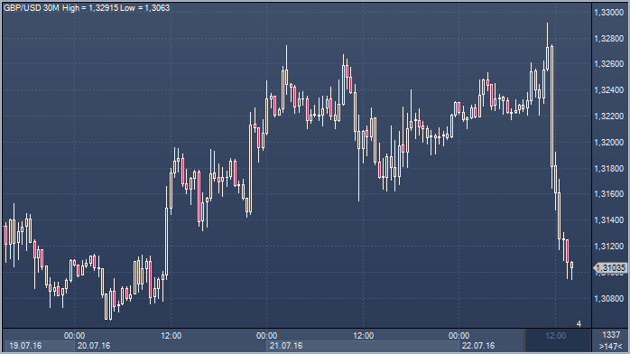 Фунт снижается в реакции на первые данные после референдума о выходе Великобритании из Европейского союза, поскольку цифры возобновили опасения за состояние экономики страны. Стерлинг упал по отношению ко всем 16 основным валютам в пятницу, после того как Markit Economics сообщил, что индекс менеджеров по закупкам в секторе упал в июле, по предварительным оценкам, до 47.4 с 52.3 в июне. Средний прогноз аналитиков, опрошенных агентством Bloomberg, предполагал падение показателя до 48.8. Значение ниже уровня 50 говорит о сокращения сектора. Снижение сектора услуг Великобритании было самым сильным с момента начала подсчетов 20 лет назад, по данным Markit. Оптимизм по поводу будущего роста также снизились самыми быстрыми темпами с начала сбора статистики в 1996 году. Аналогичное снижение наблюдалось и в промышленном секторе: производственный индекс Markit упал до 49.1 с 52.1 в июне.