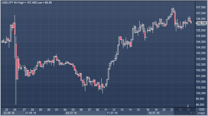 На текущей неделе состоятся заседания ФРС США и Банка Японии. Ожидания относительно данных событий определят повышенную волатильность пары доллар/иена в первой половине недели. На рынке активизировались слухи, что ФРС по итогам июльского заседания сигнализирует сохранение курса повышения ставок. Многие от Банка Японии ожидают дополнительное стимулирование. Согласно данным CFTC (Комиссии по торговле товарными фьючерсами), спекулянты за прошедшую неделю до месячного максимума увеличили длинную позицию по доллару США. Фьючерсы на ставку по федеральным фондам с вероятностью 45% в данный момент подразумевают одно повышение на 25 базисных пунктов до конца текущего года. Поэтом, если ФРС опубликует по результатам заседания FOMC заявление с ястребинами нотками, доллар, действительно, будет иметь потенциал для укрепления. Однако, с учетом комментариев главы Банка Японии, которые были сделаны в конце прошлой недели, именно по отношению к иене американская валюта может оказаться не способной продемонстрировать рост. Сегодня в интервью телеканалу Bloomberg Лаура Фитзсиммонс, вице-президент торговли валютами и инструментами с фиксированной доходностью из JP Morgan, сказала, что курс доллар/иена вернется к уровню 100.00 в течение ближайших нескольких месяцев. Источник: ProFinance.Ru - Новости рынка Forex