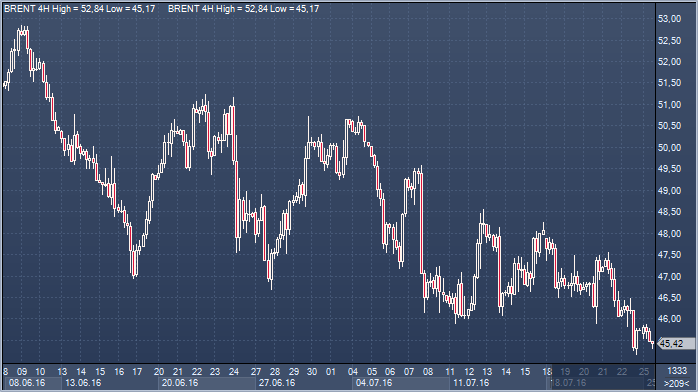 В начале новой недели нефть сорта Brent торгуется лишь немногим выше 2.5-месячного минимума $45 за баррель, достигнутого в пятницу. Brent завершил прошедшую неделю снижением на 4%. Среди участников рынка воцарились пессимистичные настроения. Финансовые инвесторы продолжают выходить с рынка, тем самым оказывая усиленное давление на нефтяные котировки. По данным CFTC, на неделе до 19 июля число чистых длинных спекулятивных позиций по WTI сократилось на 18 400, до 136 100 контрактов. Это третье сокращение за последние четыре недели, в результате чего число чистых длинных позиций опустилось до минимального уровня с начала марта текущего года. Между тем сейчас показатель, скорее всего, продолжает падать. ICE обнародует соответствующие данные по Brent сегодня днем. Вероятнее всего, число чистых длинных спекулятивных позиций по этой марке также сократится.