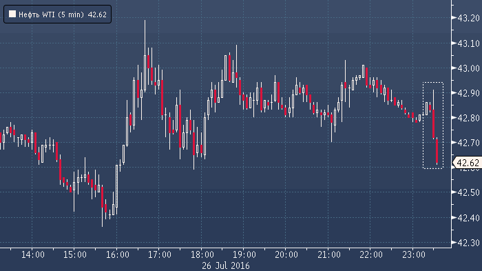 Котировки фьючерсов не нефть марки WTI отреагировали снижением на публикацию отчета Американского института нефти (API):