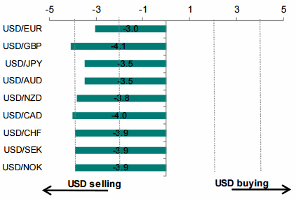 Сегодня последний рабочий день месяца, и наша квантовая модель предполагает, что закончится он распродажей доллара. В июле он несколько подорожал против большинства валют G10, а фондовый рынок США продемонстрировал лучшую динамику, чем большинство индикаторов других стран G10, поэтому приуроченная к окончанию месяца ребалансировка портфелей, вероятно, будет выражаться в продаже доллара. Исходя из результатов тестирования нашей модели на исторических данных, мы советуем открывать позиции только когда сила сгенерированного ей сигнала превышает определенное значение. Сегодня таких сигналов два: продажа американской валюты против фунта и луни. Почти удовлетворяют требованию по силе сигнала продажа доллара против франка, а также шведской и норвежской крон. Отметим, что максимальную активность инвесторы, перетряхивающие портфели в конце месяца, проявляют до и во время лондонского фиксинга (ProFinance.ru: 18:00 МСК) последнего рабочего дня. Источник: ProFinance.Ru - Новости рынка Forex