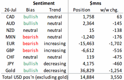 Как следует из последних данных CFTC, за неделю до 26 июля спекулянты продолжили покупать доллар и продавать евро с фунтом. Благодаря этому объем чистого лонга по доллару против основных валют вырос на $3.55 млрд до 14.8 млрд, что является максимальным значением с середины февраля. Чистый шорт по евро вырос на внушительные $1.7 млрд, благодаря чему его объем достиг рекордных с января $15.5 млрд или 112 000 фьючерсных контрактов (эта цифра велика, однако меркнет по сравнению со 183 000 фьючерсных контрактов по состоянию на декабрь 2015 года). Второй главной ставкой медведей после евро является фунт, чистый шорт по которому вырос на $500 млн с лишним до $6.6 млрд или 80+ тыс фьючерсных контрактов, что является новым историческим рекордом. Это ставит медведей по британской валюте в довольно уязвимое положение, но мы подозреваем, что спекулянты продолжат давить на нее в преддверии намеченного на этот четверг заседания Банка Англии, на котором прогнозируется снижение ключевой ставки на 0.25%. Что касается «защитных» валют, таких как иена и франк, то спекулянты несколько сократили объем чистого лонга по ним, а также продавали валюты-близнецы аусси и киви. Объем чистой длинной спекулятивной позиции по луни незначительно вырос. Источник: ProFinance.Ru - Новости рынка Forex