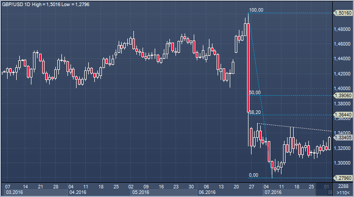 В последние пару недель британская валюта чувствует себя заметно лучше, и, в то время как заседание Банка Англии, намеченное на этот четверг, вносит элемент неопределенности, если забыть о нем, и взглянуть на изменения в технической картине, то можно будет говорить о наличии повода для оптимизма относительно дальнейших перспектив. Стабилизация выше 1.3050, 1.3150, а теперь и прорыв 1.3300/20 — все это говорит в пользу развития восстановления. Рост пока что сдерживают офера в районе 1.3350/60, но настрой остается приподнятым и сокращение коротких позиций может обеспечить дополнительный импульс движению. Ближайшей целью такового является линия сопротивления с 29 июня в районе 1.3422, и если взглянуть на более масштабные графики, где можно усмотреть формирование потенциальной разворотной модели, материализация озвученного сценария даст повод надеяться на более выраженное восстановление. Прорыв выше 1.3422 откроет дорогу к 1.3480 (максимумы середины июля) и 1.3530 (максимум 29 июня), а затем и к 1.3644 (38.2% от падения после референдума). Источник: ProFinance.Ru - Новости рынка Forex
