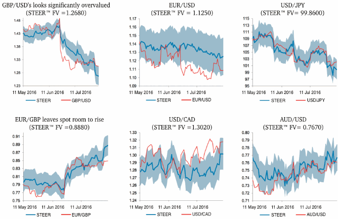 Валютные стратеги BNP Paribas обновили еженедельную оценку ситуации на валютном рынке, в подготовке которой используется квантовая модель «STEER», довольно успешно зарекомендовавшая себя с точки зрения точности своих прогнозов. Напомним, что данный банк является пионером использования данного подхода к оценке «справедливости» текущих валютных курсов. Основу данной методики представляет взаимосвязь между процентными ставками, стоимостью акций и цен на сырьевые товары.