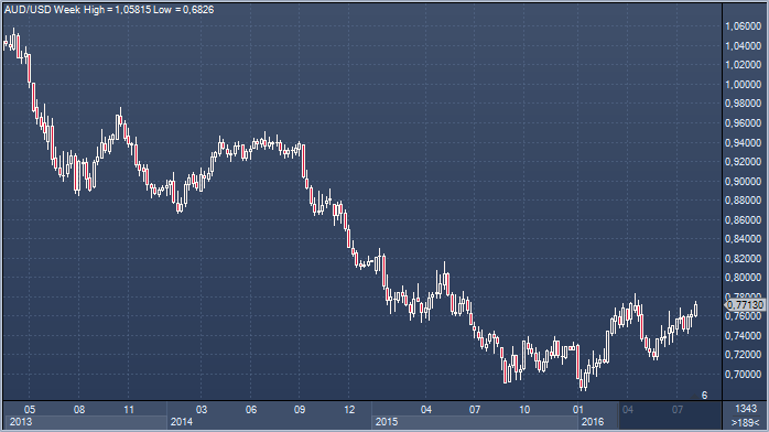 Быки по аусси/доллар (AUD/USD) сталкиваются со встречным ветром в лице нисходящей линии тренда, проведенной с 2013 года, и проходящей сейчас примерно на 0.7745. Это в сочетании с продолжающимся схождением спрэда в ставках в Австрилии и США создает краткосрочные риски снижения. Пара может отступить к 0.7628, поддержке Фибоначчи. Так считает технический аналитик Bloomberg Сйджул Гокал. В то время как бычий тренд преобладает на кратко- и среднесрочном горизонте, быки должны проявить некоторую осторожность. Текущее состояние перекупленности призывает к этому. Пара сталкивается с многолетним сопротивлением трендовой линии, спреды по ставкам движутся не в пользу AUD, что увеличивает шансы отката в область 0.7628-0.7588. 9-дневный RSI перекуплен. Сопротивление расположено на 0.7756, 0.7765. Поддержка находится на 0.7662, 0.7628/22, 0.7598, 0.7588 Источник: ProFinance.Ru - Новости рынка Forex