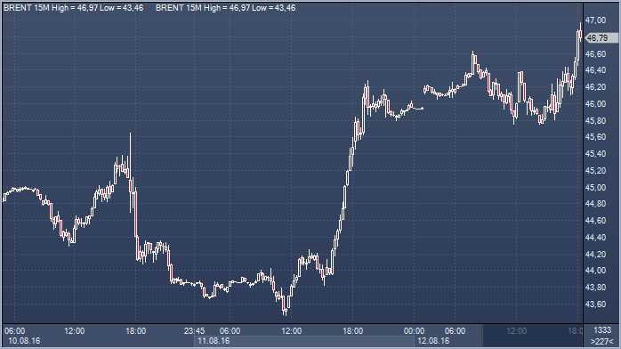 18:27 UvG: Brent довольно быстро отскочил от 41 до 47, но точно также быстро он может вернуться и обратно. Низкая вероятность повышения ставки ФРС в сентябре, новые словесные вбросы на тему заморозки добычи, отчёт DOE который явно занижает данные по добычи, позволили быкам существенно подтянуть цены, но это всё временно, как говорится на соплях... Всю прошедшую неделю цены находились ниже 45$, а пятничный положительный отчёт Baker Hughes показал мощное прибавление в количестве буровых. Так какая же интересно себестоимость сланцевой нефти, похоже ниже 40 баксов, думаю что скоро мы это точно узнаем... Ха-ха...