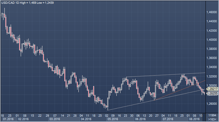 Канадский доллар продолжает расти вместе с ценами на нефть, при этом в доллар/канаде зафиксирован линии поддержки с минимумов мая, и, в то время как пару пока выкупают на спадах к двадцать восьмой фигуре, баланс рисков теперь смещен в пользу штурма линии тренда с 2014 года в районе 1.2760. Прорыв ниже будет негативным сигналом и заставит обратить еще больше внимания на напоминающую голову и плечи структуру на долгосрочных графиках.