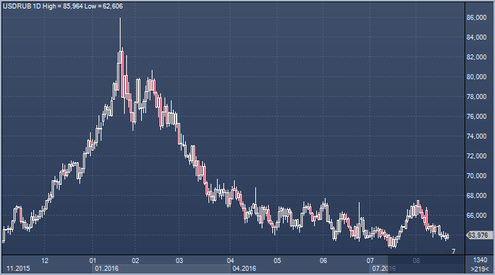 Август 2016 года может стать первым за десять лет, когда рубль не упадет, а, наоборот, вырастет - благодаря растущим ценам на нефть, написали в обзоре аналитики Bank of America Merrill Lynch "Россия: конец "августовского проклятья?". "Этот август может стать первым за десять лет, когда рубль не ослабнет. Учитывая, что пик негативного влияния сезонных факторов уже позади, рубль может еще больше укрепиться благодаря росту цен на нефть", - написали аналитики. В то же время, рост может оказаться незначительным из-за более низких поступлений на счет текущих операций, а также продолжением смягчения денежно-кредитной политики Банка России. "Мы сохраняем прогноз по курсу 65 рублей за доллар на конец года", - отмечают они. Источник: ProFinance.Ru - Новости рынка Forex