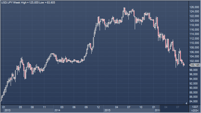 Оливье Корбер, аналитик Societe Generale, говорит о том, что USD/JPY в настоящее время представляет собой очень асимметричный профиль, а следующим шагом, вероятно, станет либо небольшой отскок, либо резкий обрыв в сторону 95. "Мы по-прежнему оптимистичны в среднесрочной перспективе, поскольку ФРС может еще поднять ставки, тогда как в Японии ожидается ослабление политики в целях повышения инфляции и стимулирования торговли. Но неизбежный перерыв является серьезным риском. Мы находимся на краю психологической поддержки на уровне 100, в рамках медвежьего канала. Ценовое действие показывает, что рынок нервно смотрит на 100. Тем не менее, этот уровень находится в середине медвежьего канала, который по иронии судьбы начался в тот день, когда Банк Японии установил отрицательные ставки. Его границы будут проходить на 93.50/102 21 сентября, когда Банк Японии соберется на следующее заседание. Симпозиум в Джексон-Хоул, как правило, является "голубиным" событием, и ФРС вряд ли станет раскачивать лодку перед выборами в США. Бездействие ФРС должно оставить доллар под давлением. Банк Японии может проявить решимость, в борьбе с чрезмерным усилением валюты. Правда, снижение ставки не смогло ослабить иену в январе, бюджетный пакет был уже объявлен, а предельная эффективность QE снижается. Банк Японии еще может анонсировать программу действий, но повернуть вспять прогресс иены может оказаться сложной задачей", - написал эксперт. Источник: ProFinance.Ru - Новости рынка Forex