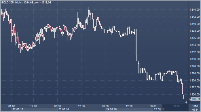 Цены на золото и серебро вчера днем попали под сильное давление. Золото потеряло более чем $10, опустившись до четырехнедельного минимума менее чем $1325 за унцию. Серебро подешевело на 1.4%, достигнув восьминедельного минимума в $18.5 за унцию. Сегодня снижение продолжается. Давление на котировки оказывает укрепление доллара США. Некоторые участники рынка явно открывали соответствующие позиции в преддверии выступления Джанет Йеллен в пятницу, хотя мы сомневаемся в том, что она даст какие-нибудь указания на время следующего повышения процентных ставок. Если нет, то можно ожидать возобновления роста цен на золото и серебро.