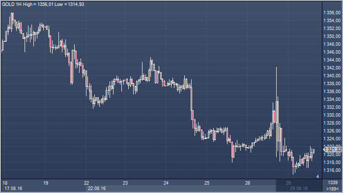 Цены на золото в начале новой торговой недели достигли 4.5-недельного минимума. В пятницу днем желтый металл первоначально подорожал до уровней выше $1340 за унцию, отреагировав на речь председателя ФРС Джанет Йеллен, однако не сумел удержаться на достигнутых уровнях и завершил день на негативной территории. Давление на цены оказало укрепление доллара США, который первоначально показал слабость, после чего отыграл все потери. Доходность 10-летних правительственных облигаций США (US Treasuries) также заметно выросла. Пятничное падение цен сопровождалось незначительным оттоком вкладов (1.4 тонн) из ETF-фондов, что завершило период из пяти дней притока золота в фонды. Первоначально Йеллен заявила в своей речи, что доводы в пользу увеличения ставки в последние месяцы стали более убедительными, отметив улучшение ситуации на рынке труда и хорошие перспективы экономики и инфляции. Однако она не указала время следующего повышения ставки. Между тем вице-председатель ФРС Стэнли Фишер был более откровенен и заявил, что видит вероятность повышения ставки в сентябре и еще одного повышения до конца года. Согласно фьючерсам на ставку по федеральным фондам, в настоящий момент вероятность изменения ставки в текущем году составляет 75%. Это максимальный уровень с начала июня, когда слабые данные по рынку труда за май привели к резкому падению ожиданий. Источник: ProFinance.Ru - Новости рынка Forex