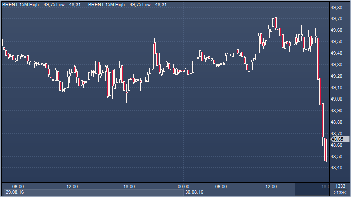 Цены на нефть резко снижаются в начале нью-йоркской сессии, реагируя на рост курса доллара. Доллар США укрепляется относительно большинства мировых валют во вторник после выхода неожиданно сильных данных. Индекс потребительского доверия в США в августе 2016 года подскочил до 101.1 пункта, максимального уровня с сентября 2015 года, сообщила исследовательская организация Conference Board, которая рассчитывает этот индикатор. Индикатор отношения американских потребителей к текущей финансовой ситуации в августе повысился до 123 пунктов со 118.8 пункта месяцем ранее. Индекс потребительских ожиданий на ближайшие полгода вырос до 86.4 пункта с 82 пунктов в июле. Комментарии Фишера также способствовали росту доллара, который вновь не исключил сегодня, что ставки могут быть повышены еще дважды в этом году, увязав это с новыми макроэкономическими данными. Одним из важнейших показателей станут данные о безработице в США за август, которые будут опубликованы в пятницу. Согласно средним прогнозам аналитиков число рабочих мест в США выросло на 184 тыс. в августе после увеличения на 255 тыс. в июле, а уровень безработицы снизился до 4.8% с 4.9% месяцем ранее.