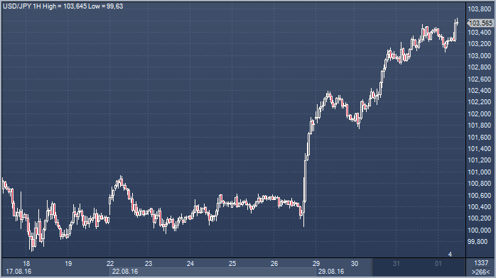 | 01.09.16 11:09 | Scotiabank: доллар/иена подрастет еще на пару фигур | 01.09.16 11:58 | Brexit не так страшен, как оказалось: фунт резко растет |