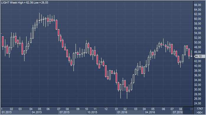 | 06.09.16 17:59 | Цены на нефть тяготеют к снижению - эксперты | 06.09.16 19:00 | Чего от золота ждет UBS? |