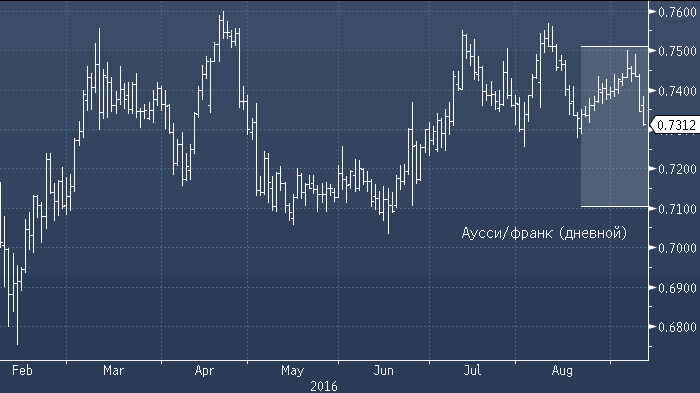 По мнению наших валютных стратегов, наиболее привлекательной сделкой на эту неделю является продажа аусси/франка с целью chf0.71 и стопом chf0.7505. Бонды входят в стадию медвежьего рынка и тянут за собой другие активы, создавая благоприятные условия для ставок против «риска», в лонгах по которому плотно сидят спекулянты и другие участники рынка. Недавний обвал на рынке акций и облигаций заставит FOMC занять более осторожную позицию и, как мы и ожидаем, воздержаться от повышения ставок в этом году. На наш взгляд, причина текущего эпизода бегства от риска находится в Европе, где ЕЦБ так и не может определиться относительно своих дальнейших действий. Текущее рыночное позиционирование по облигациям предполагает наличие большого потенциала для дальнейшего снижения высокодоходных валют, таких как аусси.