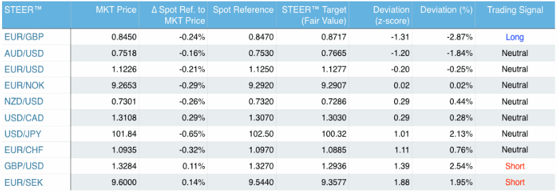 Валютные стратеги BNP Paribas опубликовали корректировку сигналов квантовой модели «STEER», довольно успешно зарекомендовавшая себя с точки зрения точности своих прогнозов. Напомним, что данный банк является пионером использования данного подхода к оценке «справедливости» текущих валютных курсов. Основу данной методики представляет взаимосвязь между процентными ставками, стоимостью акций и цен на сырьевые товары.