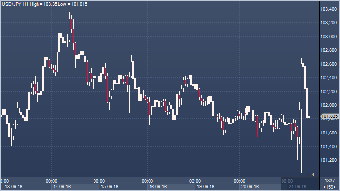 | 21.09.16 11:04 | Westpac: наша модель делает агрессивную ставку на рост киви | 21.09.16 12:08 | RBC: доллар/иена может упасть ниже Y100 в течение нескольких недель |