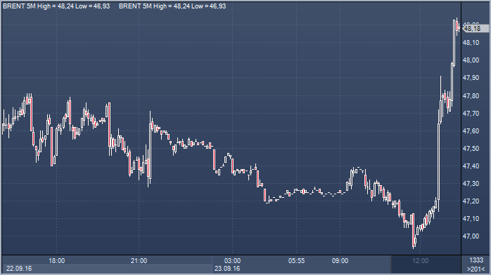 Нефть резко дорожает в цене после поступления первых новостей из Вены. Саудовская Аравия предложила сократить свою нефтедобычу до уровней, отмечавшихся в начале года, при условии, что Иран заморозит собственное производство сырья на текущем уровне, сообщает Рейтер со ссылкой на три неназванных источника, знакомых с обсуждениями. Только что в Вене закончились переговоры Саудовской Аравии и Ирана на уровне министров. Еще вчера вечером не было достигнуто никакого консенсуса, но теперь, по всем признакам, он найден. С.Аравия предложила Ирану этот вариант в сентябре, Иран пока не сообщил о своем решении. Нефтяной трынок традиционно эмоционально реагирует на заявления, поступающие из России или Саудовской Аравии, двух крупнейших производтителей сырья. Так, вчера Москва заявила о готовности не только заморозить добычсу нефти, но и сократить ее на 5 %. Либо дела с бюджетами этьих стран совсем пошли плохо, либо отраслевые аналитики указанных стран тщательно проанализировали ситуацию и пришли к выводу, что резкое падение каплвожений в отрасли и рост стоимости обслуживания громадных долгов американских сланцевиков после повышения процентных ставок ФРС в декабре будет тяжким бременем для них, что можно приступить к сокращению добычи в ОПЕК и России, не опасаясь, что высвободившееся место займут американские и китайские конкуренты.