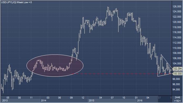 Если пятничные цифры по NFP окажутся умеренно сильными (+150-200 тыс), как и ожидает рынок, доллар/иена, вероятно, не продемонстрирует резких движений и продолжит торговаться в области острия дневного треугольника. В феврале-августе 2014 года пара также консолидировалась возле отметки Y100, однако теперь неопределенность вокруг исхода выборов президента США и прочие факторы, стимулирующие уход от риска, вряд ли позволят ей торговаться в таком же узком диапазоне, как тогда. По нашим оценкам, главным фактором поддержки доллар/иены в среднесрочной перспективе станет быстрое восстановление экономического доверия в США и рост ожиданий того, что FOMC близок к осуществлению целого ряда повышения ставок. Если же этого не произойдет, то даже дальнейшее расширение стимулирования Банком Японии может оказаться недостаточным для ослабления иены. Мы сомневаемся, что в ближайшие месяцы доллар/иене удастся удержаться выше отметки Y100, а наш прогноз по паре на конец года составляет Y94. Источник: ProFinance.Ru - Новости рынка Forex