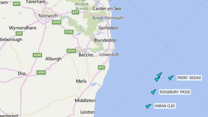 - Эти суда присоединятся к VLCC Miltiadis Junior (этот полупустой танкер дрейфует вблизи Southwold с прошлой недели) и к Front Ariake; последний получил нефть Brent и Forties через пункт перегрузки в конце июля и в начале августа.