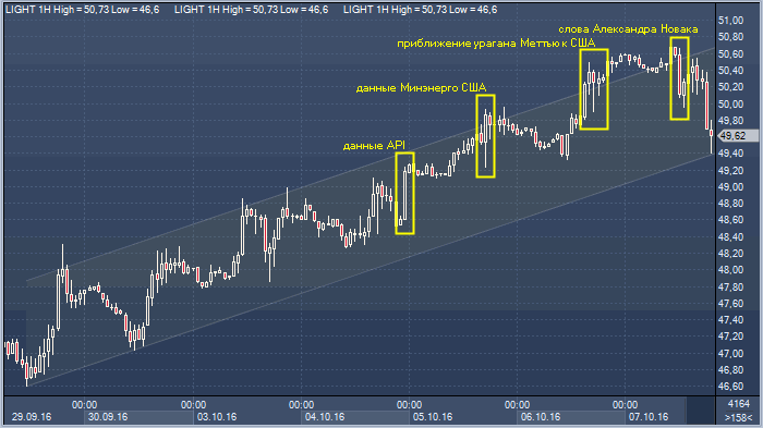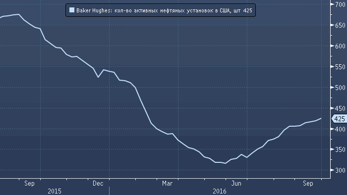 Еще одним негативным для нефти фактором сегодня выступил отчет по рынку труда в США за сентябрь. А точнее рост вероятности повышения ставок ФРС в декабре 2016 года. До отчета такое событие подразумевалось с вероятностью 63.6%, а после выхода данных по занятости вероятность возросла до 65.9%. Также имеет место быть фиксация прибыли по спекулятивным лонгам, открытым в течение недели перед наступающими выходными.