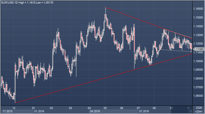 В то время как фунт на днях подарил участникам рынка немало острых ощущений, в евро/долларе наблюдается прежняя монотонная торговля в диапазоне. Впрочем, дилеры отмечают, что по мере его сужения колебания обрели более порывистый характер, и они советуют не терять бдительности. Спады в направлении 1.11 по-прежнему привлекают покупателей, но попытки развить наступление остаются неудачными и сохраняют затухающий характер. Евро/доллар остается в рамках восходящего тренда с декабря 2015, но пока он выглядит уязвимее верхней границы краткосрочного диапазона, и для улучшения атмосферы быкам по евро необходимо пробиться выше 1.1260/80. В данный момент евро/доллар держится около 1.1141, биды заметны на подходе к 1.1135/25, более крупные остаются в районе 1.1110/00 (ходят слухи о массивных стопах ниже 1.1090). Источник: ProFinance.Ru - Новости рынка Forex
