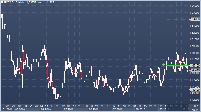 Евро/канада. 12 сентября: покупка от 1.4710, цель 1.5400, стоп 1.4350. Текущий результат -61 пункт.