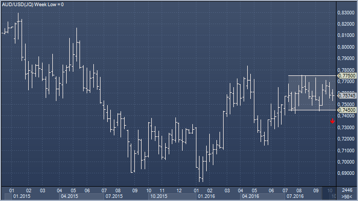 Уже больше двух месяцев аусси/доллар почти не покидает диапазон $07450-$0.7750. Текущее снижение пары не имеет никаких внутренних драйверов, кроме общего укрепления доллара, причем аусси выглядит сильнее большинства валют G10, особенно фунта, киви и иены. Дальнейшая динамика аусси, включая неминуемый выход из затяжного диапазона, также будет полностью определяться американским контрагентом.