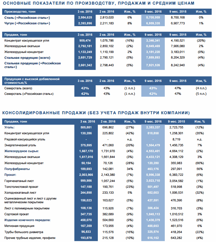 Северсталь: операционные результаты за 3 квартал и 9 месяцев 2016 года. Далее...