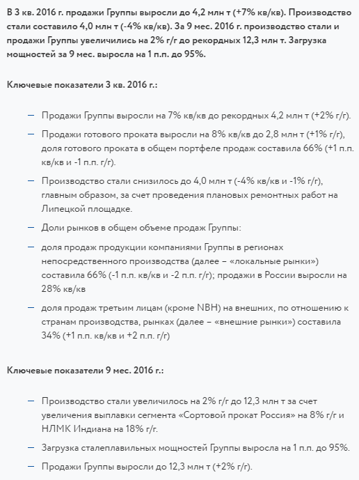 НЛМК: операционные результаты за 9 месяцев 2016 года