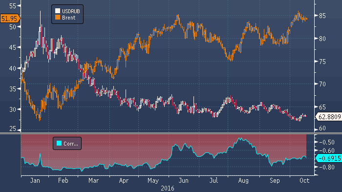 В Morgan Stanley подчеркивают, что динамика цен на нефть является ключевым драйвером для изменения курса рубля. На представленном ниже графике видно, что в летний период корреляция между рублем и нефтью значительно снижалась, но сейчас взаимосвязь вернулась к исторически приемлемым уровням (корреляция составляет 69.15%).