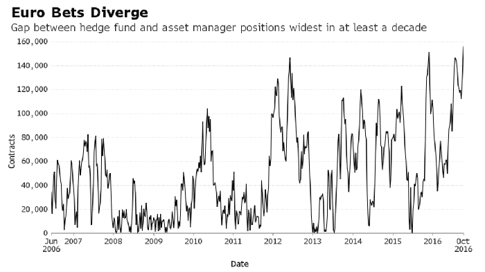 Stelrox Capital Management (фонд) остается в короткой позиции, как по евро, так и по другим европейским валютам. Евро активно используется в качестве валюты финансирования для стратегий carry trade на фоне отрицательных процентных ставок. Расхождение в позициях хеджевых фондов и управляющих активами вызвано рынком облигаций. Real-money более сосредоточили свое внимание именно на европейских облигациях, придерживаясь мнения, что увеличение монетарных стимулов приведет к росту доходности европейских долговых бумаг.