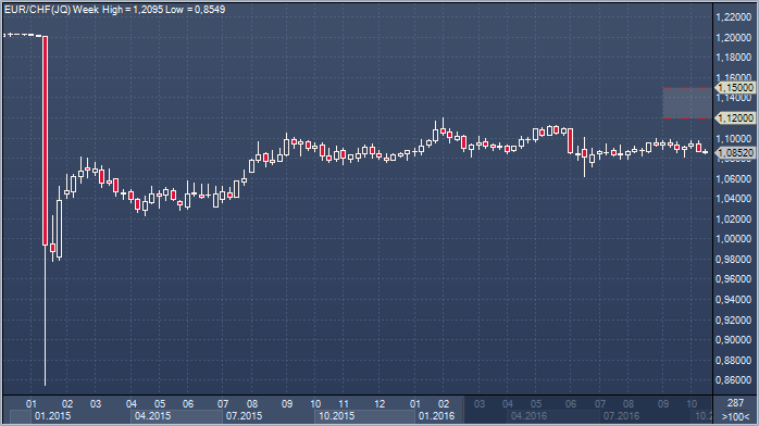 Danske Bank: ближайшие месяцы евро/франк проведет в коридоре, а через год вырастет до chf1.15