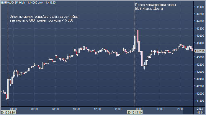 Стабилизация вблизи 1.42 воодушевила медведей на фиксацию прибыли, причем дополнительный и весьма хороший импульс этому процессу придали высказывания главы Европейского Центрального Банка (ЕЦБ) Марио Драги, однако восстановление оборвалось вблизи 1.4426. Пара замет сдала значительную часть занятых позиций и теперь держится около 1.4324. Возможности формирования бычьего поглощения на дневном графике не стоит, но даже при подобном событии картина остается благоприятной для медведей — сегодняшний рывок EUR/AUD выше выглядит как неудачная попытка вернуться выше пробитой нижней границы долгосрочного консолидационного диапазона.