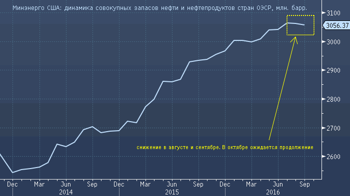 В Bernstein на основании проведенных исследований прогнозируют увеличение спроса со стороны Китая и Индии в 4 квартале 2016 года. Спрос в США не настолько хорош, как хотелось бы, но лучше, чем ожидалось. В тоже время наблюдаемое снижение запасов нефти предполагает, что рынок стал более сбалансированным. Может быть уже сейчас незначительный дефицит предложения по сравнению с спросом. Опираясь на данные по запасам нефти и нефтепродуктов группы стран, входящих в Организацию экономического сотрудничества и развития (ОЭСР), Bernstein указывает на снижение глобальных запасов в августе и сентябре. Фирма прогнозирует дальнейшее сокращение запасов по итогам октября. «Если данные по запасам верны и рынки уже достигли состояния баланса, то в 2017 году мы можем столкнуться с существенным дефицитом предложения», - говорится в опубликованном докладе.