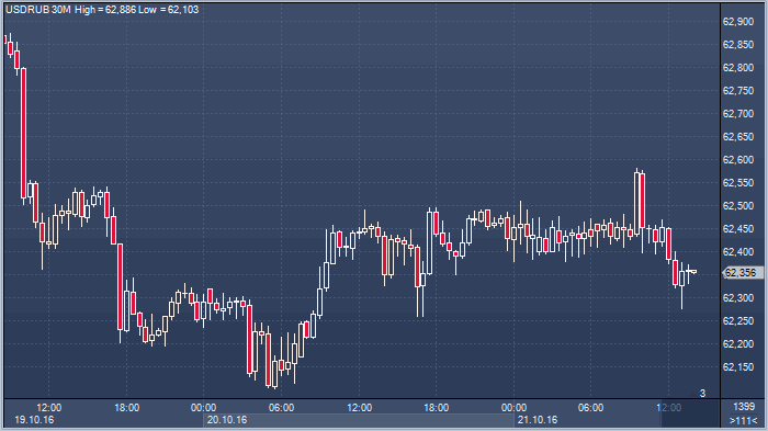 Таким образом, по официальному курсу ЦБ рубль к доллару подешевел на 3 копейки, а к евро вырос почти на 45 копеек по сравнению с пятницей. В ходе пятничных торгов на валютном рынке рубль чувствует поддержку спроса национальных экспортеров при отсутствии негативного влияния со стороны цен на нефть. Курс евро/рубль все еще остается ниже уровня 68.00 и по-прежнему нацелен проверить на прочность минимумы ноября 2015 года на 67.75. В паре доллар/рубль минимумы вчерашнего дня в области 62.10 выглядят довольно прочно. Весьма вероятно, что данный курс начнет новую торговую неделю выше данной отметки.