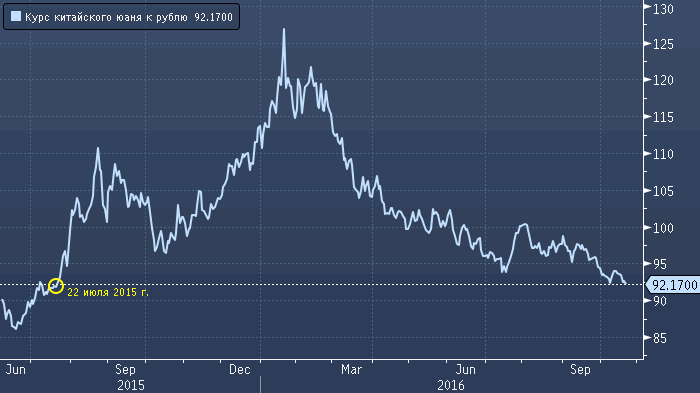 Китайский юань на торгах в пятницу в Шанхае ускорил снижение против доллара США и достиг 6-летних минимумов, в то время как российский рубль при поддержке национальных экспортеров и стабильных цен на нефть проявляет завидную устойчивость к американской валюте. Это привело к тому, что курс рубля по отношению к юаню достиг максимумов за более чем 14 месяцев. Таким дешевым юань к рублю не был с 22 июля 2015 года: менее 92 рублей за 10 юаней (прим. ProFinance.ru: формат числового значения курса определен Банком России).
